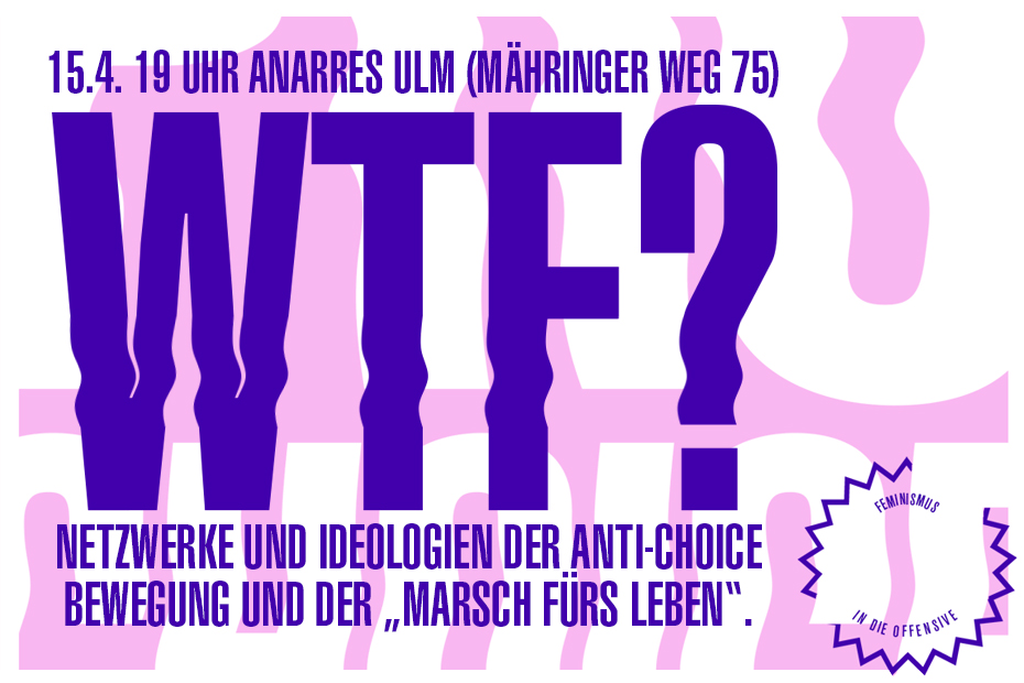 Du suchst für die Pro-Choice-Demo einen Schlafplatz in München? Du hast Platz, Menschen bei dir unterzubringen während der Proteste? Sofa, Gästebett, Matratze: Wir versuchen für dich einen Schlafplatz zu finden! Schreibe uns eine Mail an schlafplatz_prochoice@riseup.net mit den wichtigsten Infos… Weiterlesen »Schlafplatzbörse